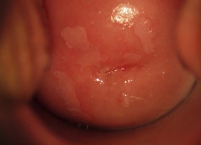 В процессе осмотра женский доктор обнаруживает поражение слизистой шейки в виде наличия белых бляшек. Белесоватый налет локализуется во влагалищной части, в области вульвы. Гинекология выделяет несколько форм данного заболевания: